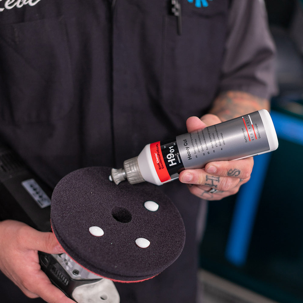 Koch Chemie Heavy Cut H9.02 is a high-performance heavy-cut compound formulated to remove severe paint defects quickly and efficiently. Designed for rotary and dual-action polishers, it eliminates sanding marks up to 1200 grit, deep scratches, heavy oxidation, and weathered paint.