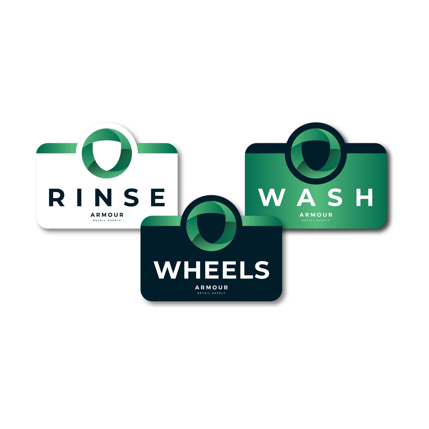 Bring order to your wash system with our Armour Bucket Vinyl Labels—a premium decal set designed to clearly identify your Wash, Rinse, and Wheels buckets. Each label is styled with our signature branding and bold lettering to create a sharp, professional look that also keeps your detailing process efficient and contamination-free.