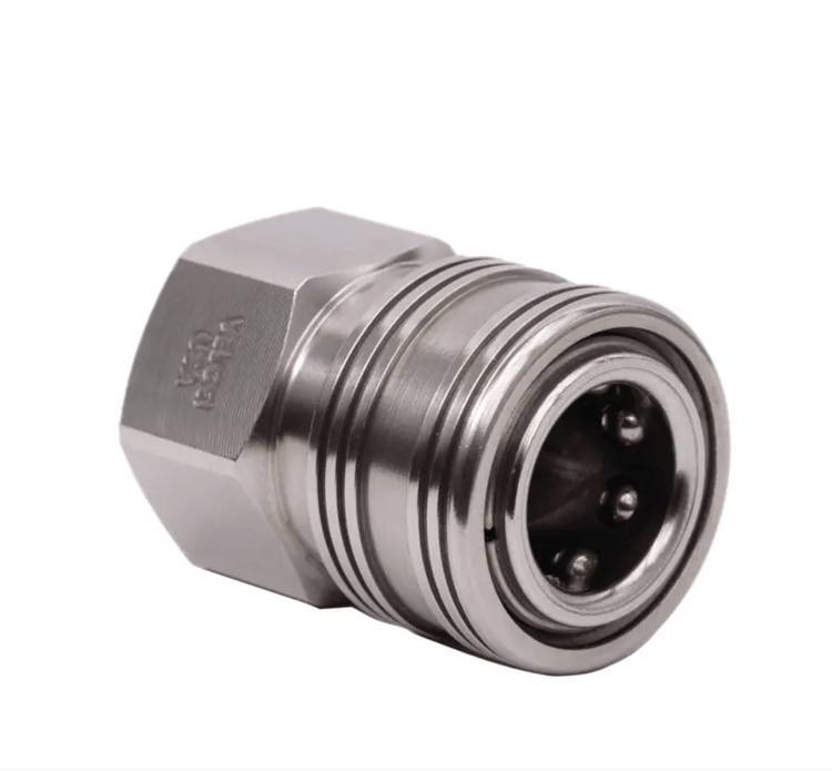 Stainless-steel fittings offer anti-corrosive properties and reliable performance. They are commonly found at all joints where high pressure fluid may need to be disconnected after use. Other areas such as lances, tips, and foam cannons are convenient places to install these QC's. As a rule of thumb, Veloci’s 3/8" fittings are normally found between the pump and the spray gun where 3/8" hose is commonly used. When purchasing plugs and couplers the male fitting has exposed threads while the female fitting has threads on the interior of the fitting. See image for reference. All Veloci fittings are National Pipe Thread (NPT) which means they have a tapered male or female thread (depending upon the model). NPT is mainly used in North America and was developed on the concept of interference by the third thread.