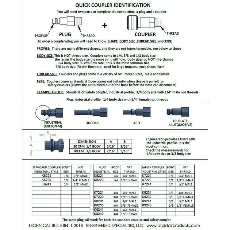 When ordering mating plugs, must use 30 CFM plug. Push button once to release the air, press button again to release the plug. Exhausts air pressure before the hose is released. Eliminates hose whip.