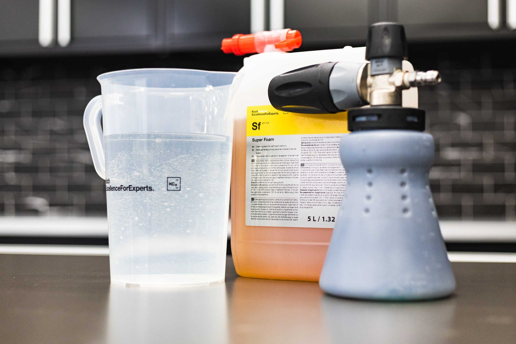 Koch Chemie Super Foam (SF) is a concentrated, high-foaming shampoo formulated for foam cannons, foam guns, and wash bays. It delivers dense, shaving cream-like foam that clings to the surface, loosening dirt and grime for a safe, scratch-free wash.