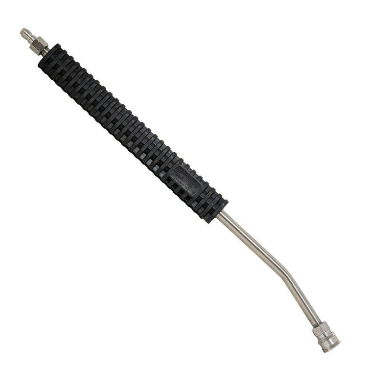 Pressure wash in style with this stainless steel lance from MTM! Able to handle 4060 PSI and up to 320 degrees Fahrenheit, this lance is built to last. With an included 1/4" connector and 1/4" quick disconnect, you are easily able to switch between pressure washing nozzles and guns to accomplish any task. This lance also features a heavy-duty insulated plastic handle to help you stay comfortable while working with hot water. Lance measures 19.7" in length.