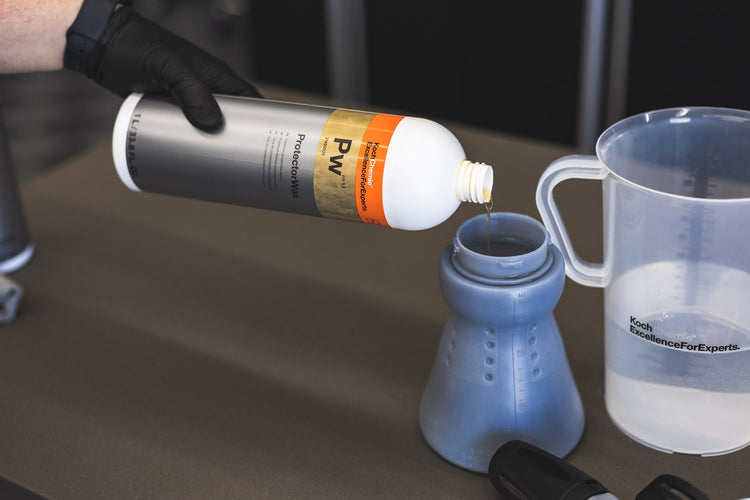 Protector Wax by Koch Chemie offers high-gloss, lotus effect, and protection. The innovative high-tech conserving wax sets new standards for protection, durability, extreme deep gloss, long-term water repellence (lotus effect), easy-to-clean performance, and vehicle drying without micro-beading. The use of polyfunctional reactive components in combination with the highest quality care components, which bond firmly with the surfaces as a network, guarantees perfect, long-lasting high-gloss protection and improved visibility during rain (beading). It improves with regular use of the gloss and protection layer covering fine scratches, and all rubber and plastic parts and convertible fabric top materials are protected against fading and embrittlement. Protector Wax thus makes a considerable contribution to maintaining the vehicle’s value. It can be used as hot, cold, and foam wax (mechanically and manually). Achieves optimum drying results even with the service water's high conductance values and difficult fan geometries.