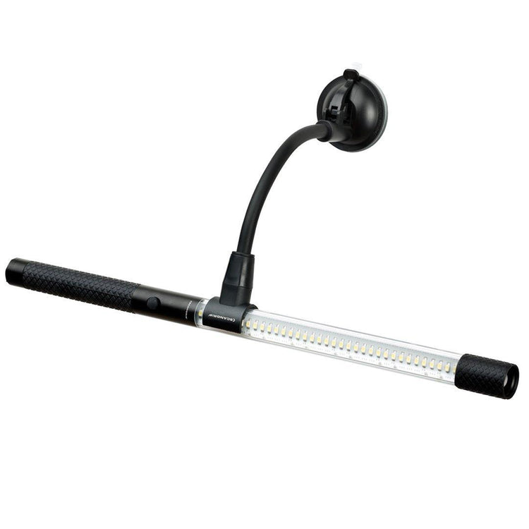 Fixed in the suspension the lighting unit can easily be turned and adjusted to provide the optimum lighting beam angle in the daily work.