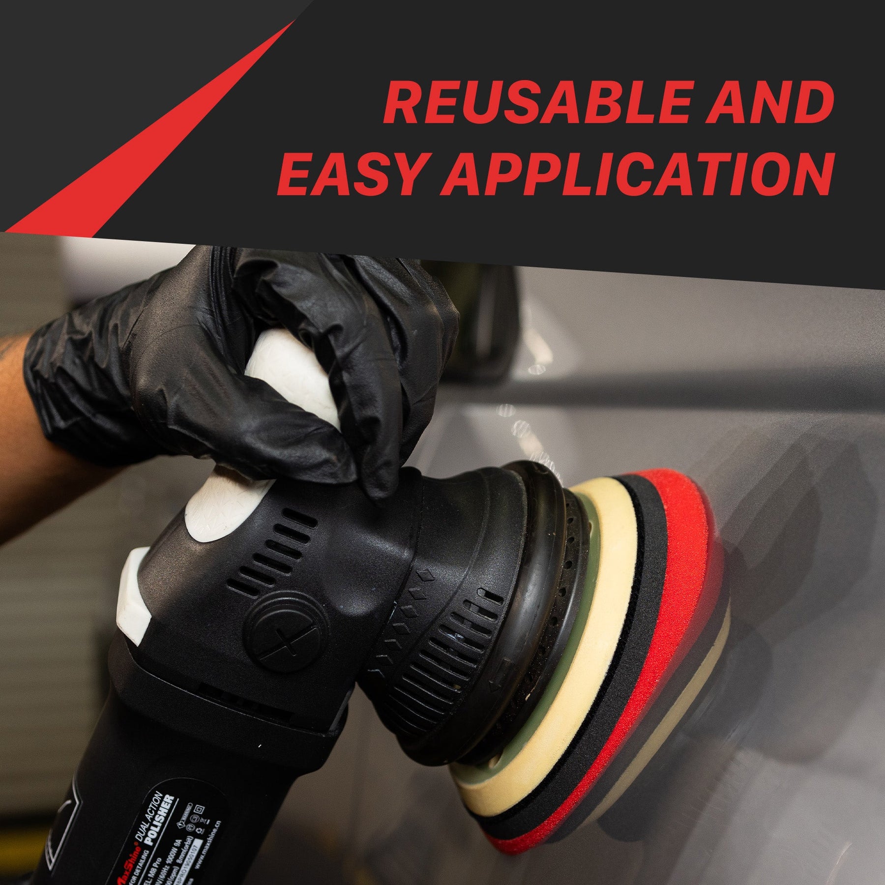 These foam polishing pads are designed for low-profile foam pads, meeting the specific needs of long-throw dual-action polishers. The EVA ( Ethylene-vinyl acetate), a rubber foam inserted in the pad, provides heat and pressure absorption, further assisted by the center cut and tapered edge, allowing for heat dissipation while providing smooth contouring on small areas and curves. The foam polishing pads are color-coded for specific detailing tasks: Cutting (Green), Polishing (Yellow), and Finishing (Red), designed for professionally removing heavy swirl marks, scratches, and any chemical oxidation remaining on the car surfaces. You can clean, wash, and reuse them.