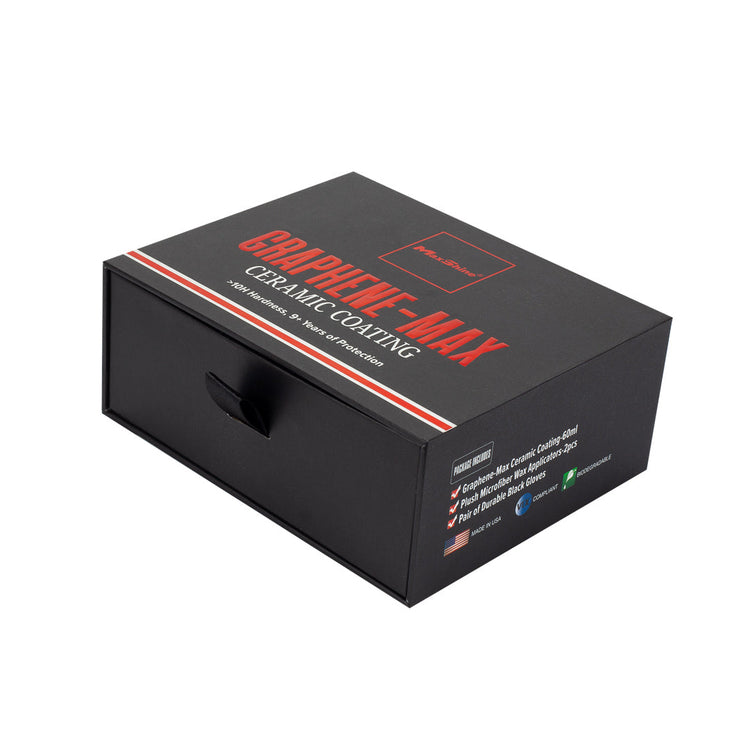 Graphene-Max Ceramic Car Coating is an upgraded formula that combines ceramic and graphene for superior protection and shine. This easy-to-apply coating offers long-lasting protection against UV rays, oxidation, swirls, water spots, and stains. Its hydrophobic properties make washing a breeze, repelling water and dirt for easier maintenance. Suitable for both beginners and professionals, this kit includes everything you need for a comprehensive coating, leaving your car with an unrivaled shine and lasting protection.