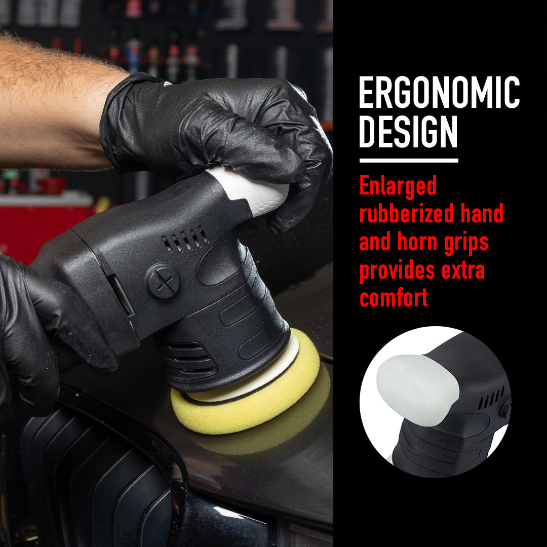 The M312 orbital polisher effortlessly handles polishing intricate surfaces. This dual action polisher is a must-have for any detailer. With its 12mm short-throw range and a 3in backing plate, it perfects where larger polishers cannot. Its sleek and ergonomic design ensures maximum comfort and control, particularly useful for beginners, allowing you to conquer even the most intricate curves and contours smoothly.