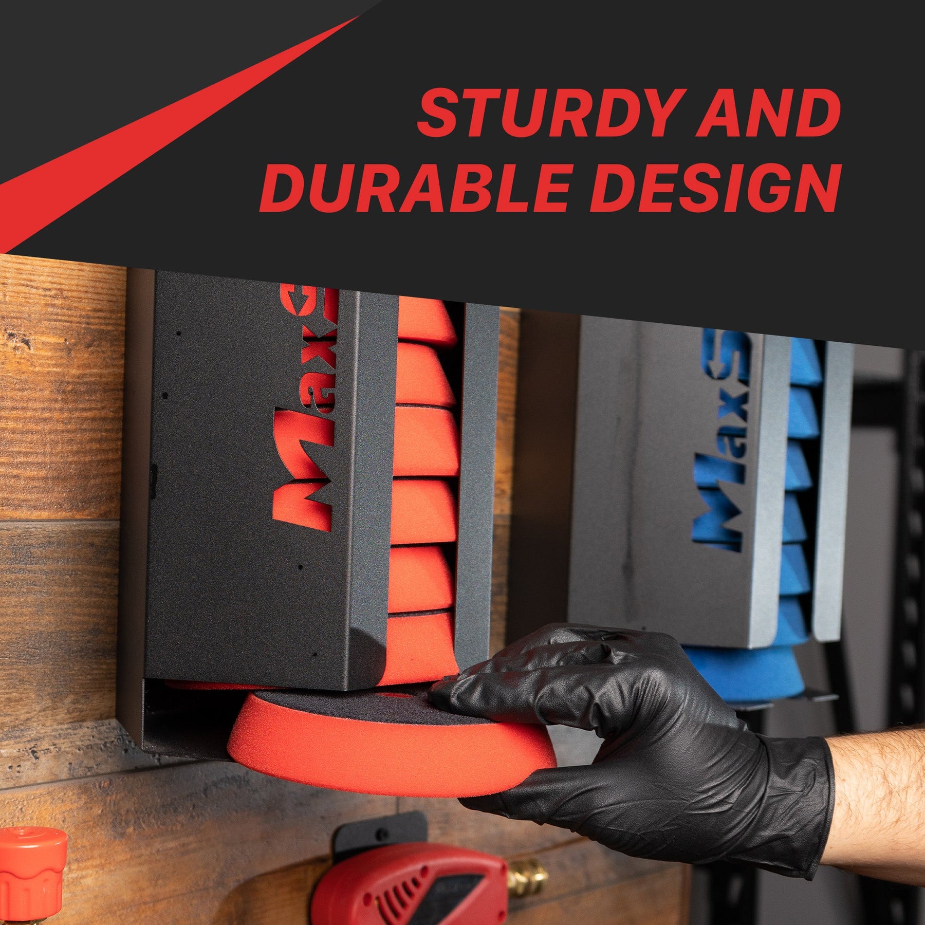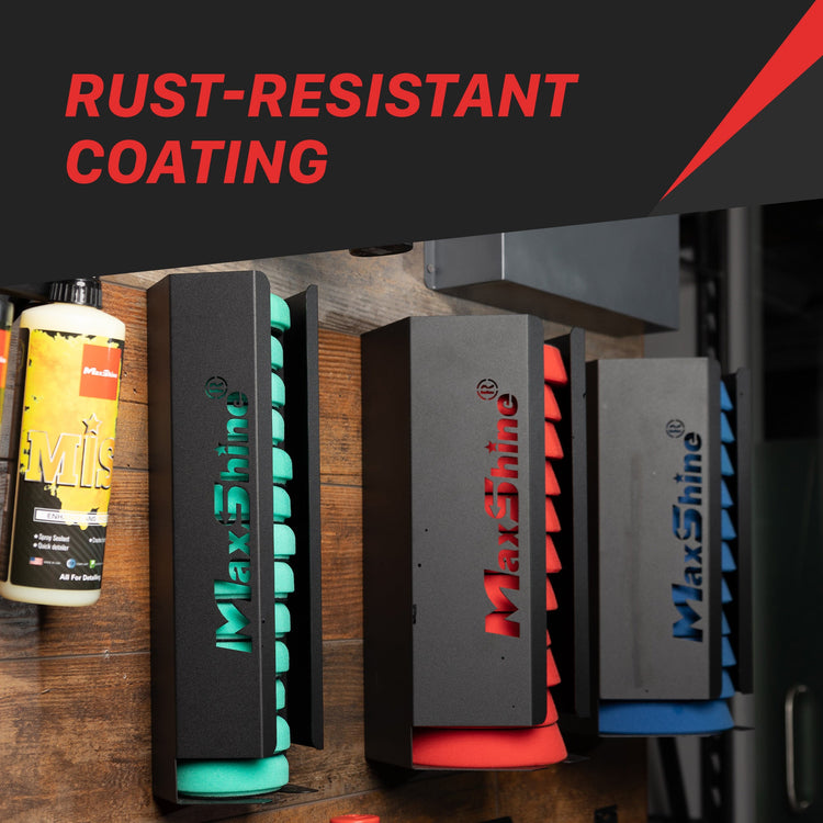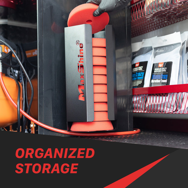 These Polisher Pads Holders are your go-to solution for impeccably organizing 3in, 5in, and 6in polishing pads. This sleek storage system effortlessly mounts directly onto your garage wall or mobile detailing set up, adding both efficiency and a touch of sophistication. No more time wasted searching for misplaced pads – this holder ensures a tidy and systematic workspace. MaxShine is where practicality meets proactive organization.