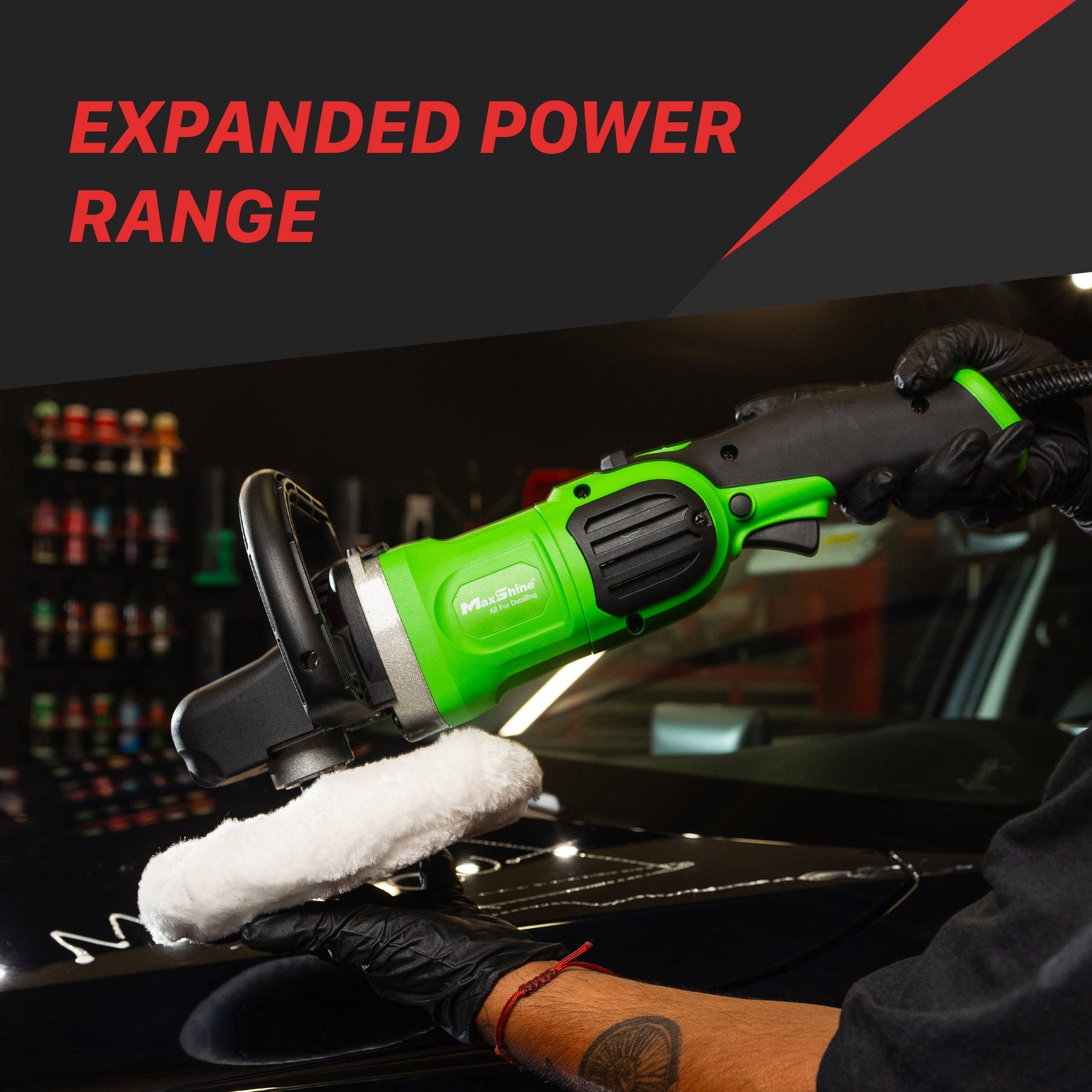 This rotary polisher, the powerful M1300 Pro, is the ultimate choice for professionals and enthusiasts. With a potent 1300-watt motor and variable speed dial and trigger, it effortlessly cuts through complex imperfections. This well-balanced, user-friendly rotary buffer sets the benchmark of quality and performance. Advance your paint correction skills with MaxShine Rotary Polishers.