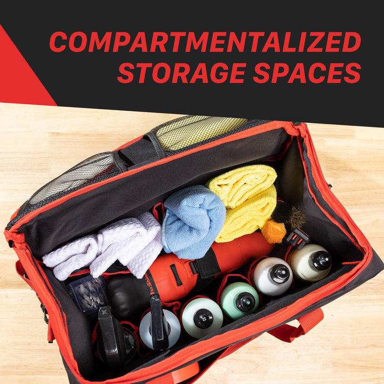 MaxShine's Small Tool Bag keeps your car care essentials organized and portable. Made from durable fabric, it features compartments and pockets for pads, chemicals, brushes, and more. The included shoulder strap allows for easy carrying, while the ample space accommodates even a polisher and detailing kit. Keep your car detailing supplies clutter-free and readily accessible with this convenient bag.