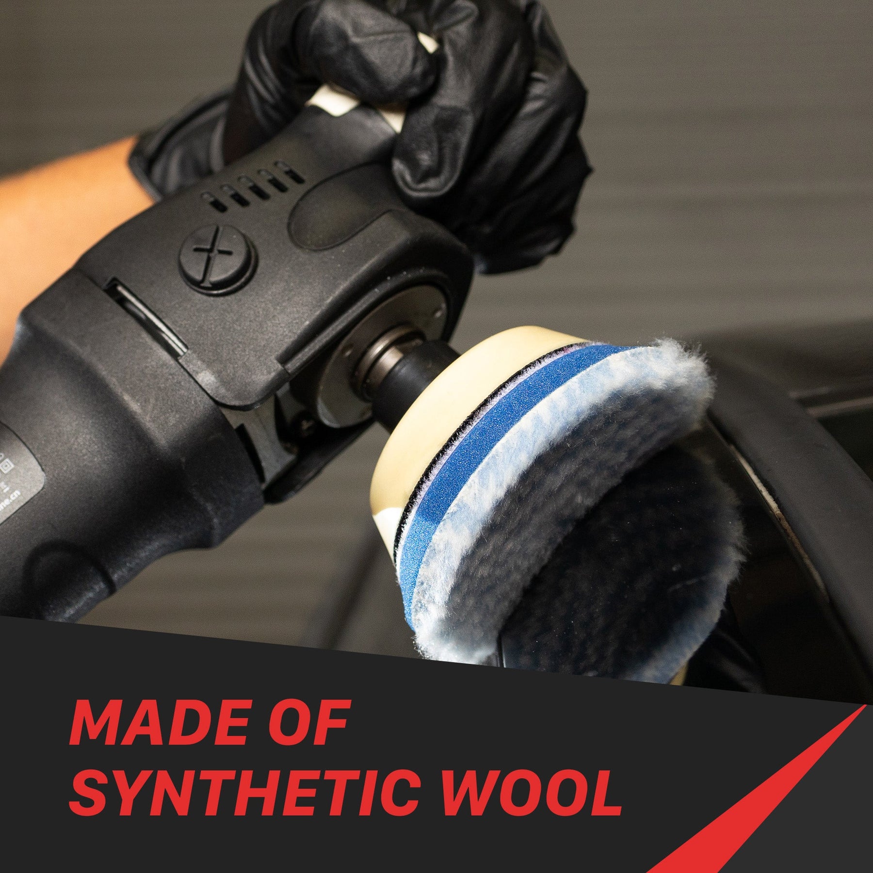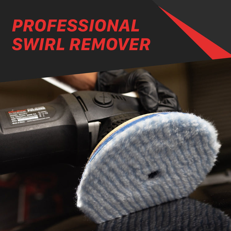 The wool pads are for cutting, made of synthetic wool, scientifically designed for high heat resistance and dissipation, incorporating high-quality material, the center cut, and a layer of foam insertion, providing more strength and cushion for absorbing pressure and heat generated by the polisher and from the surface. It works as a professional cutting pad, removing swirl marks, scratches, and any chemical oxidation that remains on the car surface and beneath, thanks to the durable material with lower pile height, enabling it to get deeper defect removal. You can easily attach or detach the wool pad with Hook and Loop attachment-ready plates.