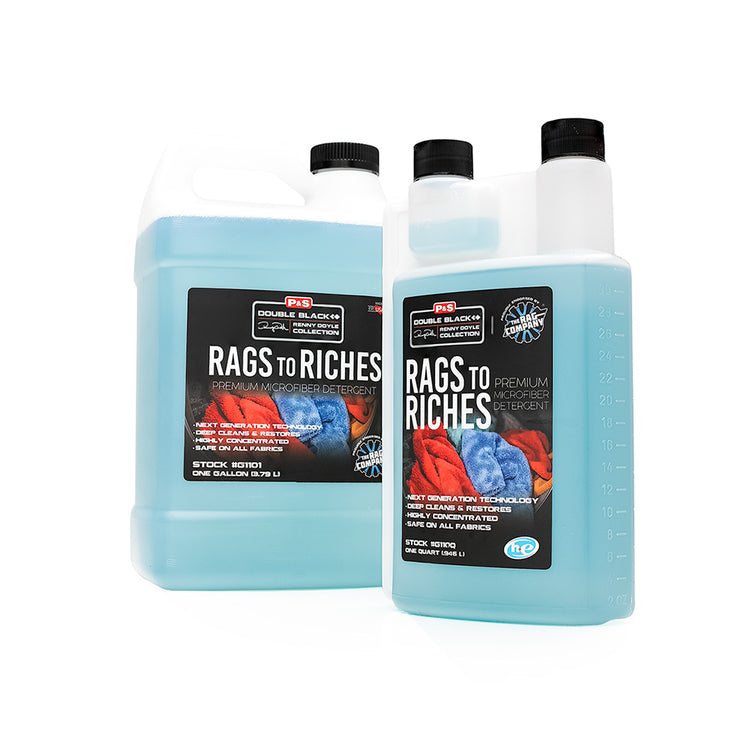 Rags To Riches from the DoubleBlack Collection is a next‑generation microfiber detergent engineered to deep clean, restore absorbency, and revitalize your detailing towels, cloths, and fabric tools. Its advanced, concentrated formula is designed to be tough on embedded grime yet gentle enough for all microfiber types — safe for home washers, commercial machines, and HE systems.