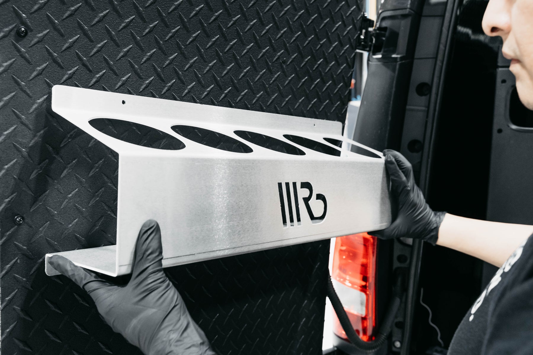 The Aluminum 5-Bottle Holder is a durable and space-saving storage solution designed specifically for iK brand spray bottles. Whether in a professional detailing shop or a mobile detailing van, this sturdy holder keeps your bottles secure, accessible, and neatly organized. Made from high-quality aluminum, it ensures longevity while helping streamline your detailing workflow.