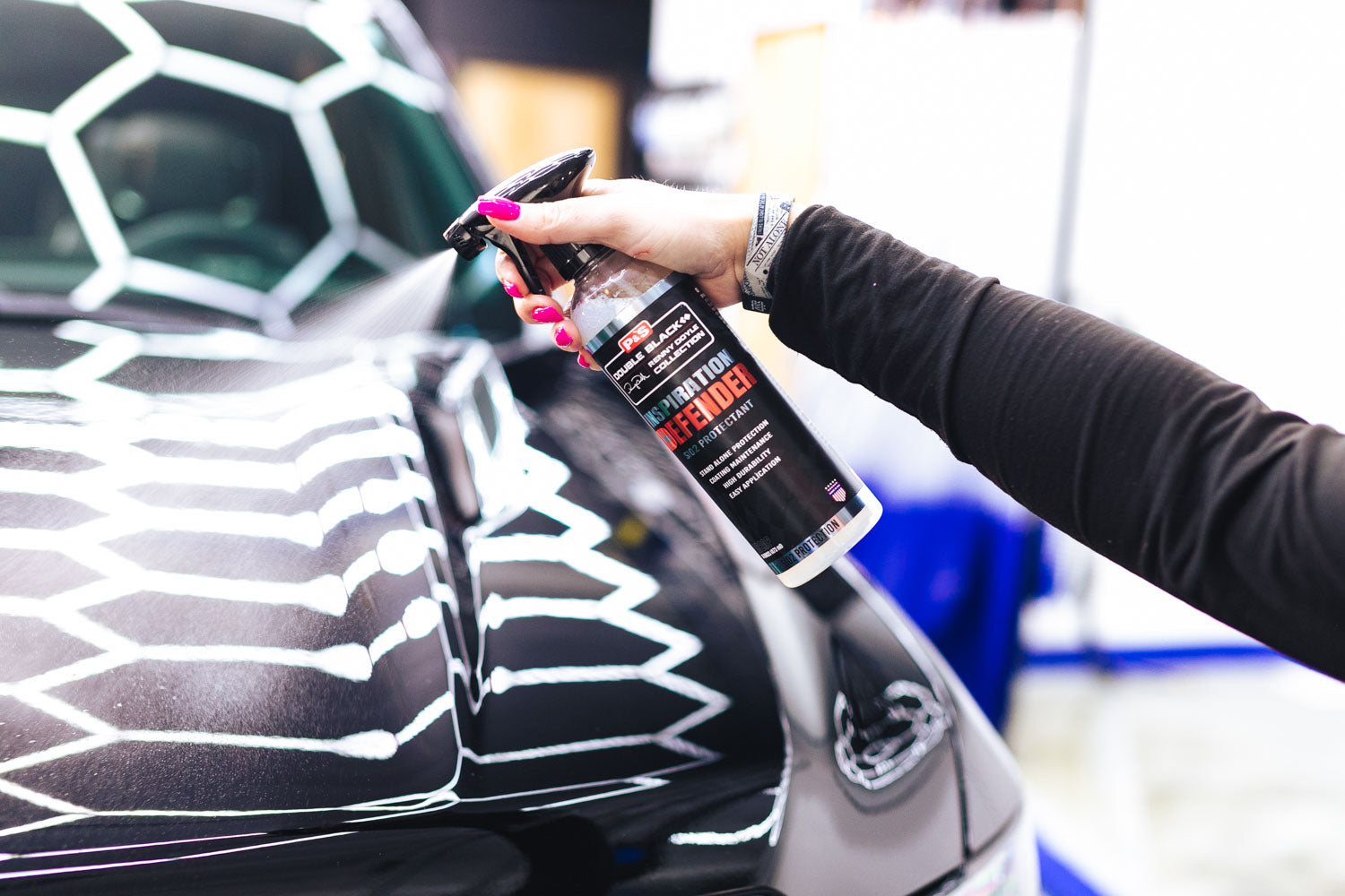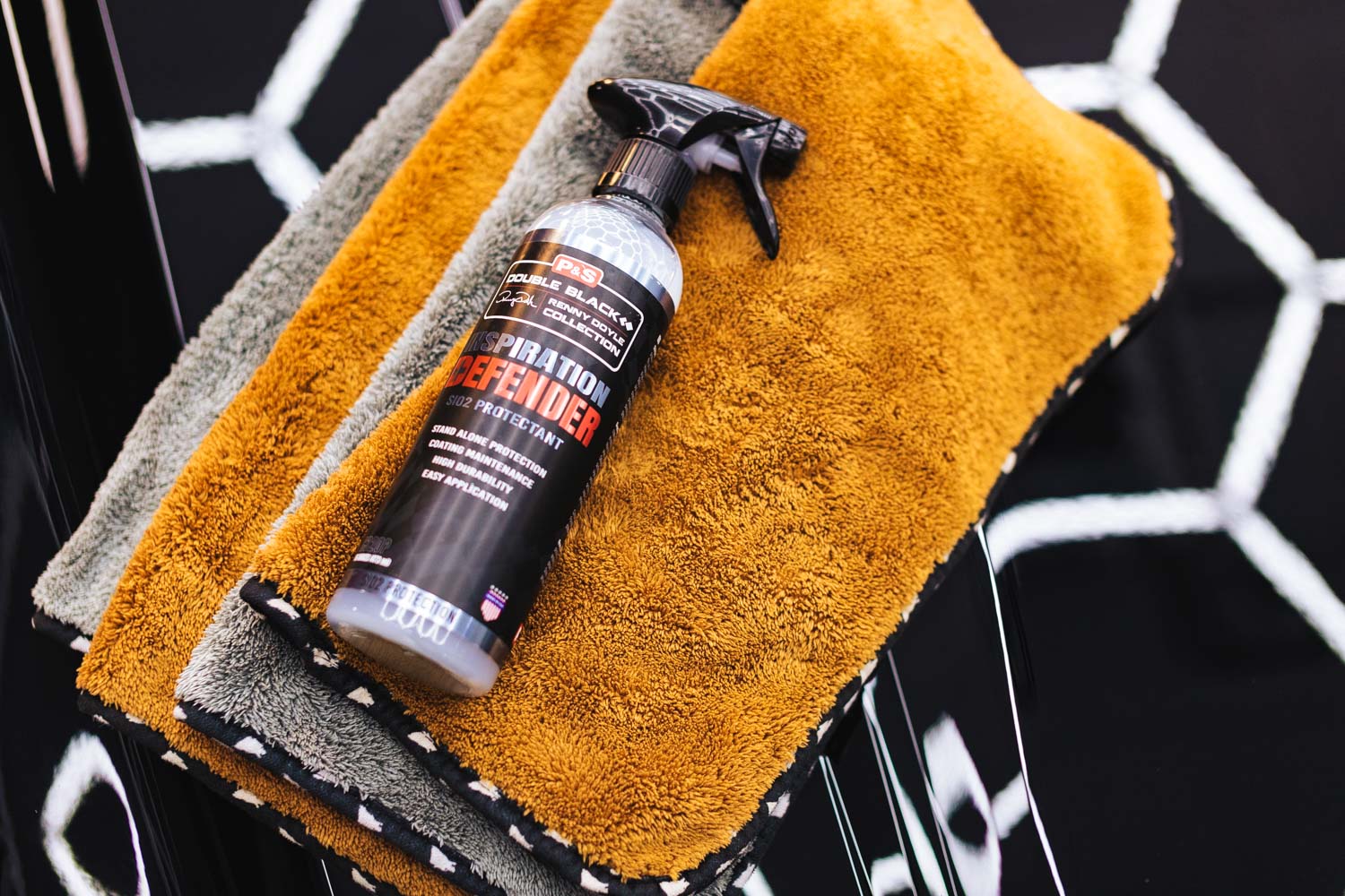 Defender is incredibly easy to apply — simply spray on and wipe off for an instant deep shine and durable protection. It’s ideal for quick maintenance, boosting gloss between washes, and enhancing water beading on any surface.