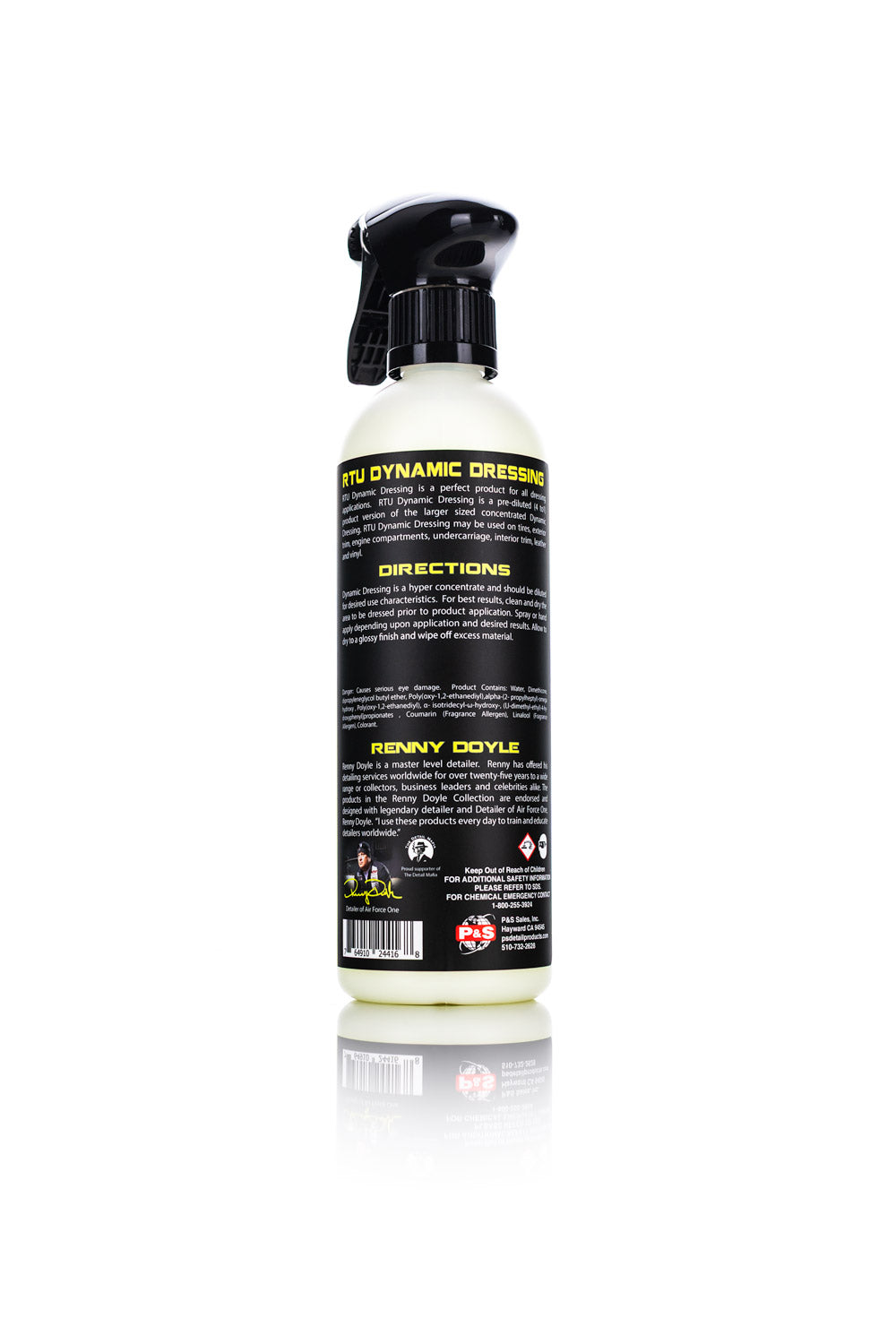 P&S Dynamic Dressing is the ultimate all-in-one solution for revitalizing your vehicle’s tires, trim, plastics, vinyl, and engine bays. Whether you're a professional detailer or an enthusiast, Dynamic Dressing offers flexible results based on your desired finish — from a natural satin to a high-gloss shine.