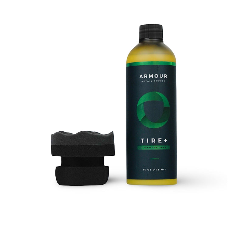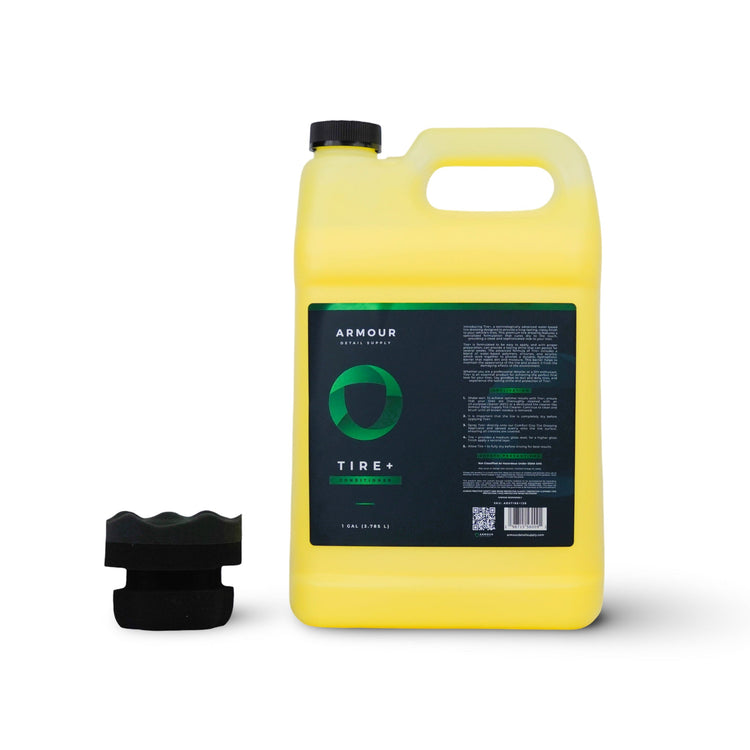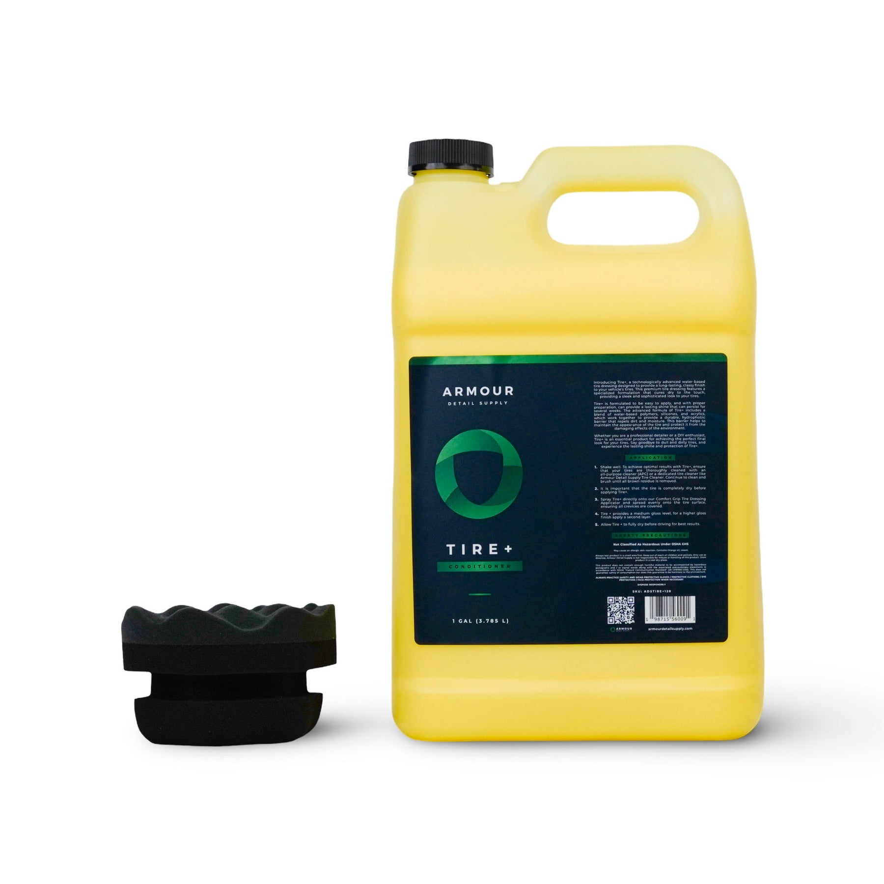 Introducing Tire+, a technologically advanced water-based tire dressing designed to provide a long-lasting, classy finish to your vehicle's tires. This premium tire dressing features a specialized formulation that cures dry to the touch, providing a sleek and sophisticated look to your tires.