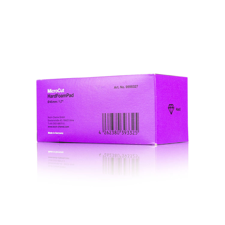 The Koch Chemie V2 Micro Cut Hard Foam Pad is specifically designed for use with Micro Cut M3.02 and Micro Cut & Finish P3.01. Its firm, fine-pored foam ensures precise control and consistent pressure, making it ideal for refining paint after compounding steps or removing holograms on harder clear coats.