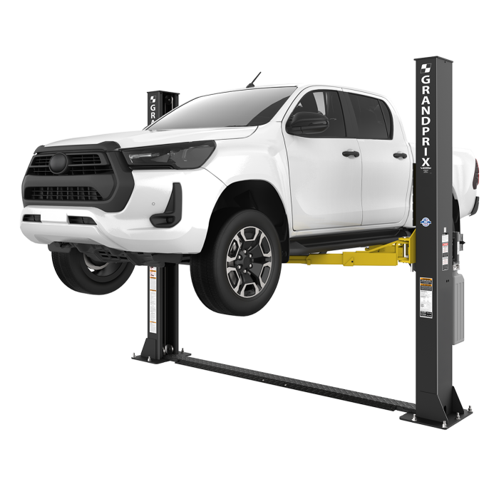 Designed for both professional shops and serious home mechanics, the GrandPrix GP-9LC strikes the perfect balance of power, reliability, and efficiency. With a 9,000-lb. lifting capacity, this versatile two-post lift is built to handle anything from nimble compact cars to full-size pickups. Its dual symmetric and asymmetric lifting options let you position the arms exactly where you need them, making it easy to tackle a wide range of vehicles with confidence. Whether you're wrenching on a daily driver or a weekend project, the GP-9LC delivers pro-level performance without compromise.