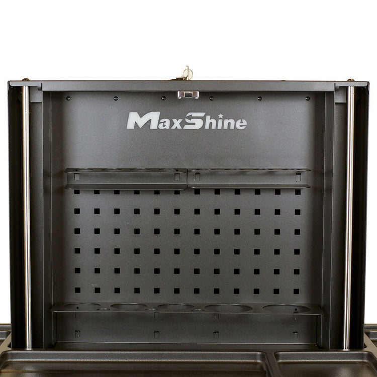 Auto Detailing Cart with Power Strip maximizes your detailing efficiency. This mobile workstation keeps everything organized with compartments for polishers, chemicals, brushes, and even more detailing tools. A retractable LED light and a pegboard offer additional functionality and security. Move freely with the cart's smooth-operating casters. Built to last and keep you organized, this all-in-one cart tackles any detailing project.