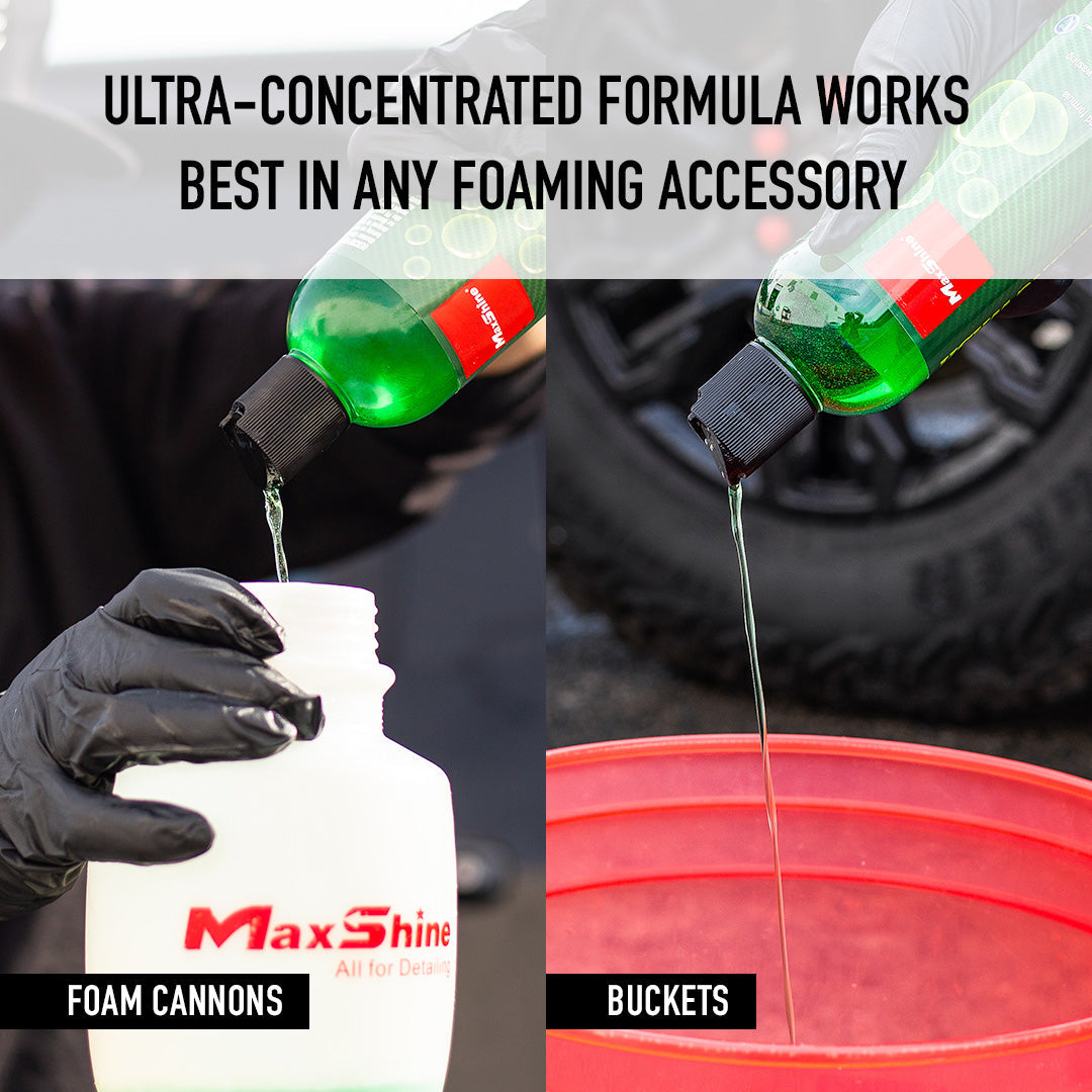 Ultra Foaming Wash is a car wash foam cleanser that produces thick suds and safely removes dirt, grime, and contaminants from your vehicle. It also minimizes scratches by providing advanced lubrication. The pH-neutral formula is safe for all surfaces and protective coatings, and it leaves a spot-free, shiny finish with a fresh scent. The ultra-concentrated formula provides maximum sudsy foam and can be used in any foaming accessory.