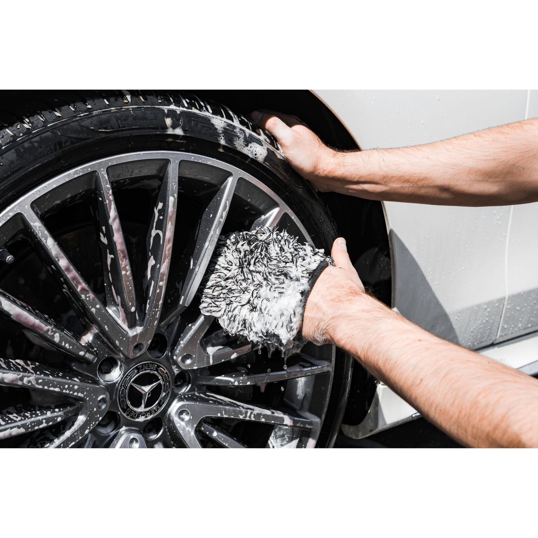 The mixed wool and microfiber construction allows for safe and effective cleaning of even the most delicate finishes. Comfortable and flexible 4-finger design allows easy access to all wheel surfaces including behind spokes! Pairs perfectly with your favorite wheel cleaner, and is a must have in your wheel cleaning regime. Machine washable, and built to last!