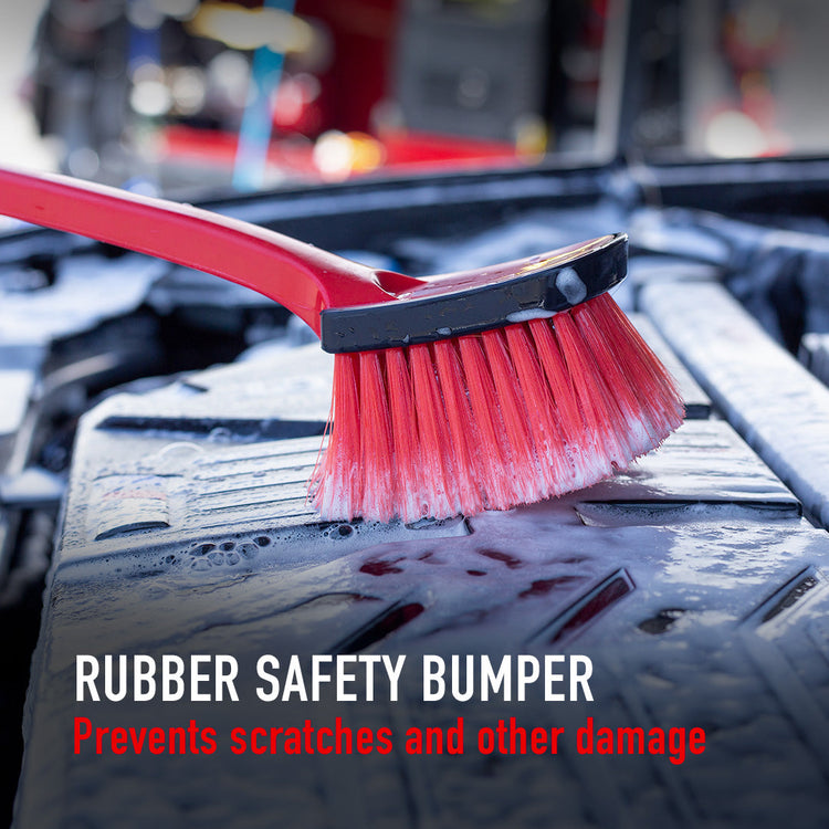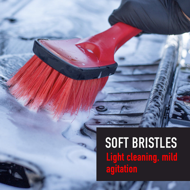 The wheel cleaning brushes, have soft and long handles, help to reach far into wheel wells and canvas convertible tops, safely removing grease, grime, and dirt from engine bay plastics, painted surfaces, and rubber and breaking up embedded contaminants and stains. Crafted from a thermal plastic rubber grip, it provides a secure hold by preventing slips and minimizing shock impact. The bristles of the medium-duty brush are made of PET and PP. Maxshine has expertise in these material technologies, developing the right brushes for specific applications.