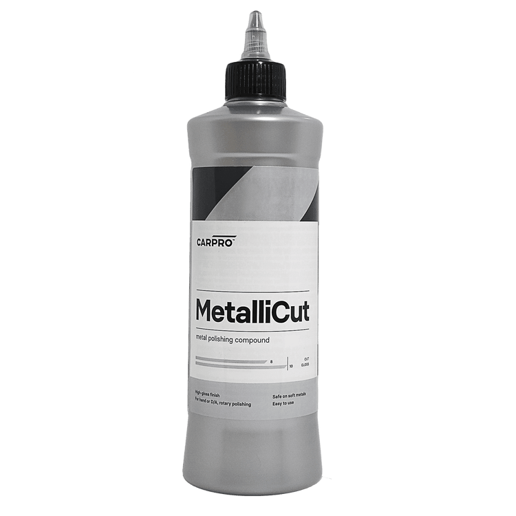 The metal polish you've been waiting for has arrived! With MetalliCut, CarPro set out to redefine the limits of a metal polish and we believe they have! No expense was spared in the design of MetalliCut... With diamond abrasive powders to compliment the diminishing abrasive compound, CarPro created a fast cutting metal polish that finishes down to an extreme gloss! Not only does MetalliCut save time and produce superior results in general but is safe even on soft metals!