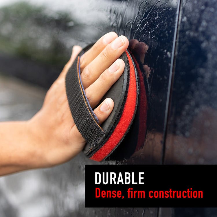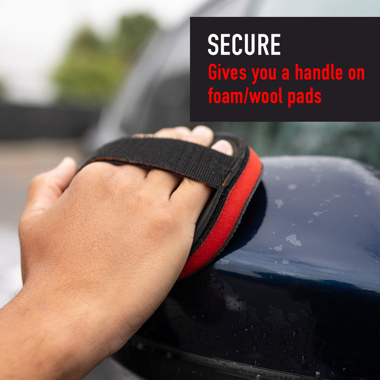 The polishing pad holder is an essential accessory designed to help your manual polishing with a 4.95-inch diameter, hook and look fastener, and strap, well suited for holding 5″ or 6″ polishing foam pads. This pad holder simplifies your manual polishing with the convenience of a built-in strap and hook and loop fastener, offering a secure grip on polishing pads, holding and controlling various types of pads by placing your fingers through the strap. The hook and loop fastener ensures a firm attachment, making manual polishing easily achieved when you can’t apply a polishing machine